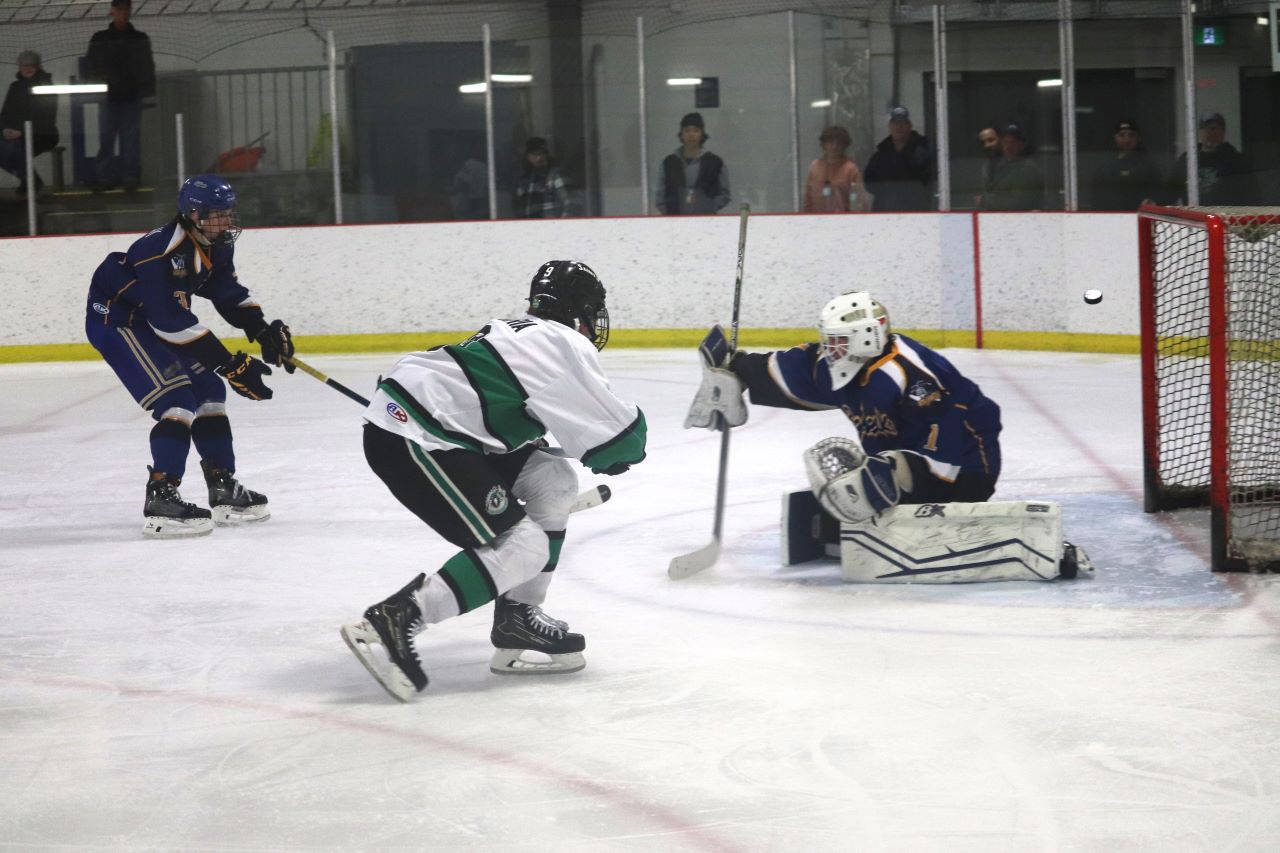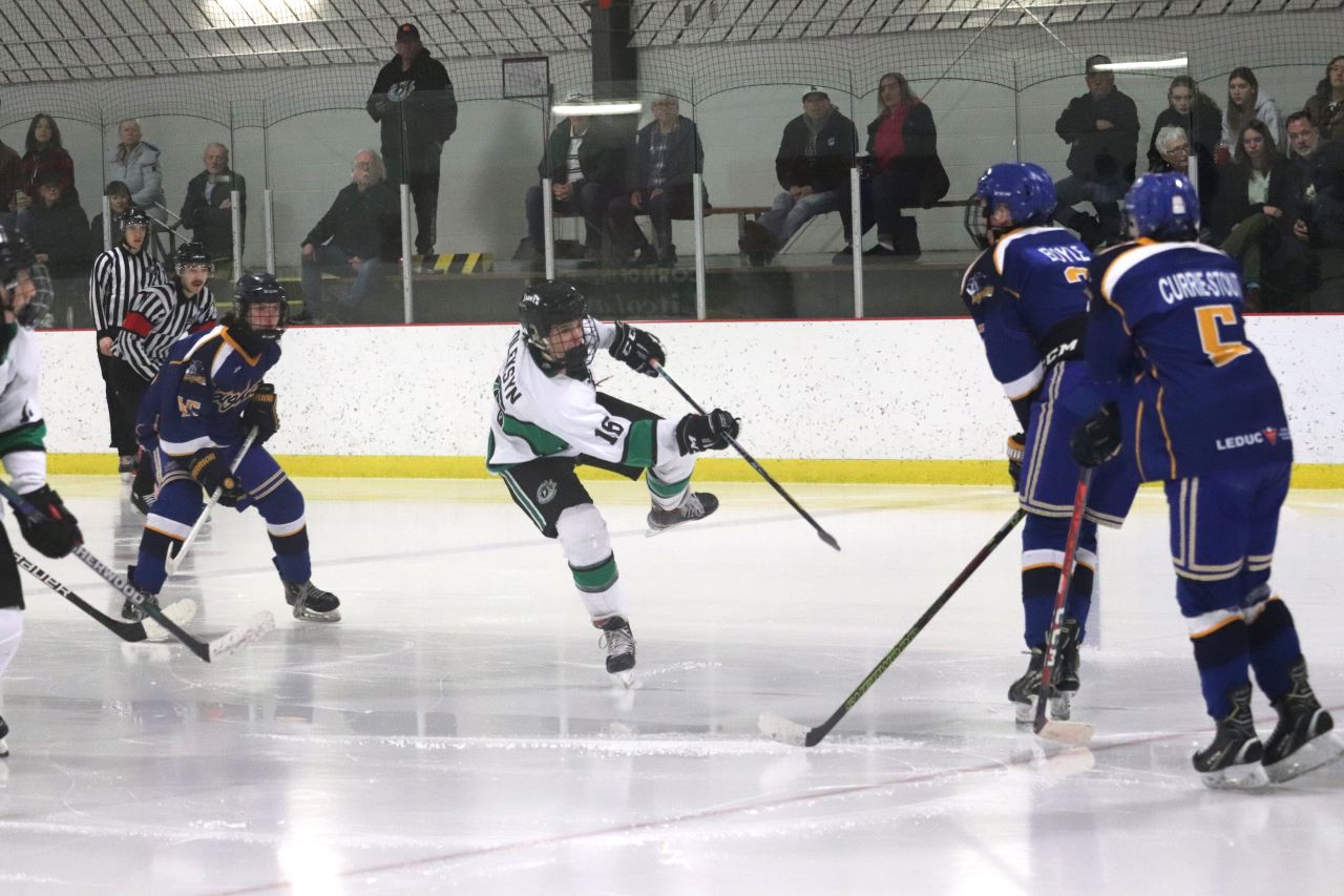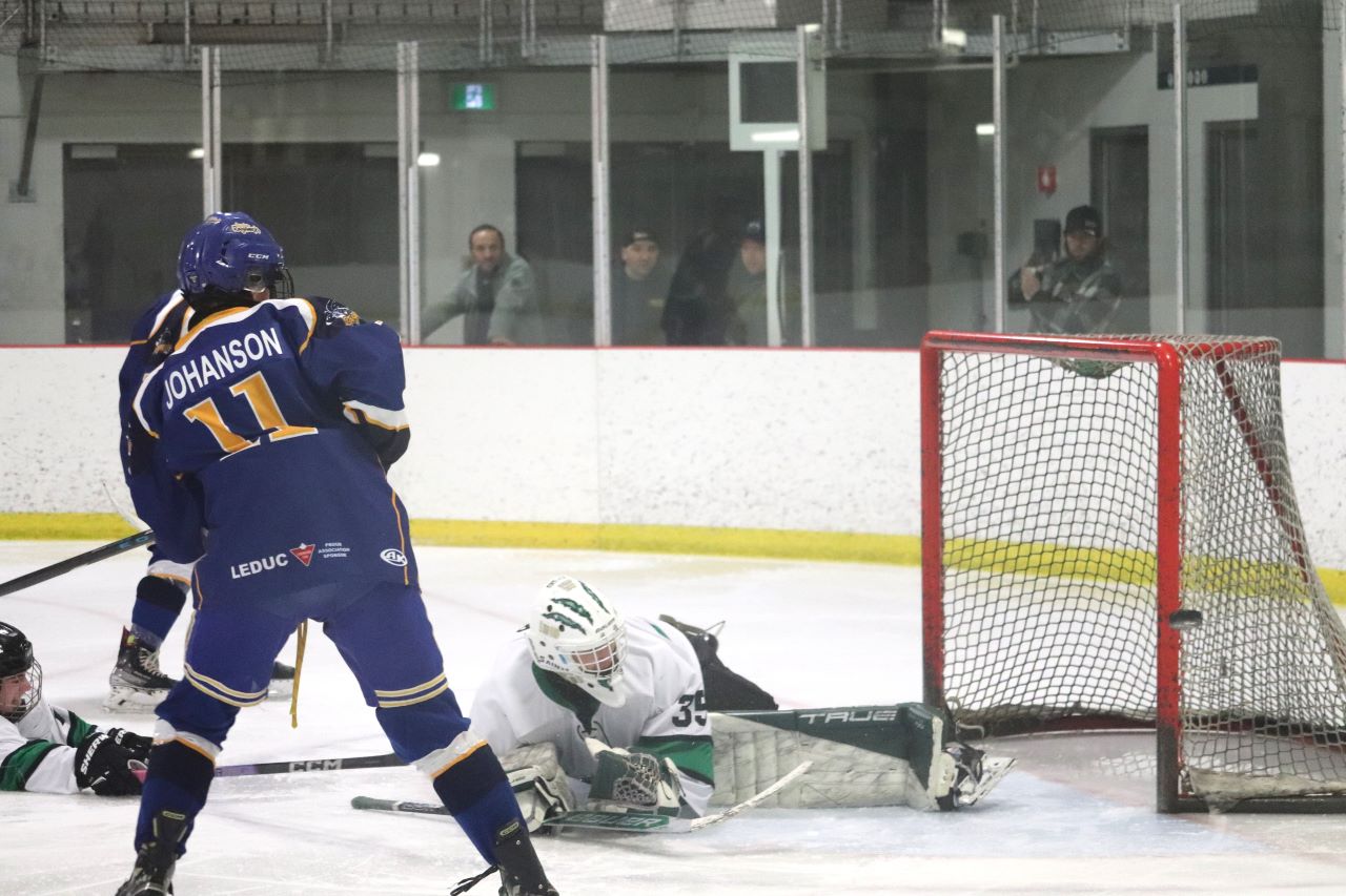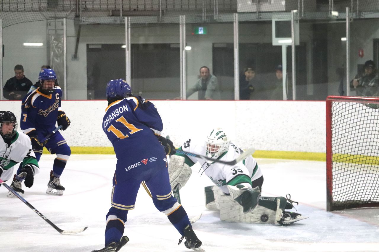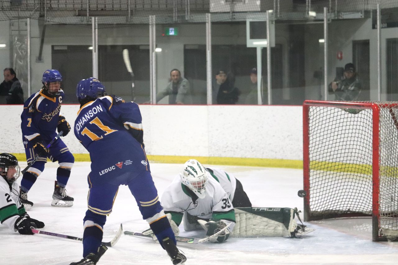 The Saints dominated zone time in the second period but only came away with one goal. Leduc got their lone goal of the game on a clever shot from behind the net on a bank-in off of the goalie’s skate.